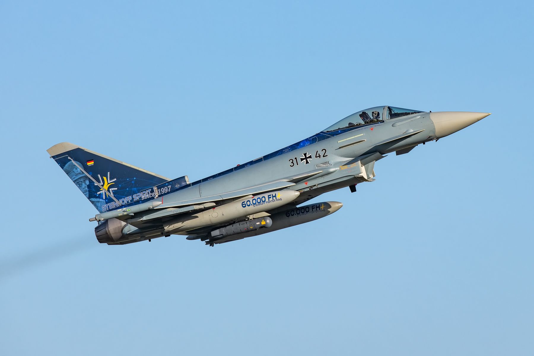 On 29 October 2014, IPA 7 (serialled 98+07) first flew with apex strakes and new delta fuselage strakes. These were removed again in March 2016 as the ‘GEF/Zulassung’ was only temporary.